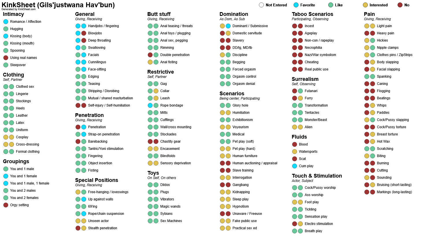 Favorite Kinks: Bondage, Spanking, Pain, Pet names, bit of Degradation, Praise, Oral(any), and lots of others. Can also just be vanilla.
