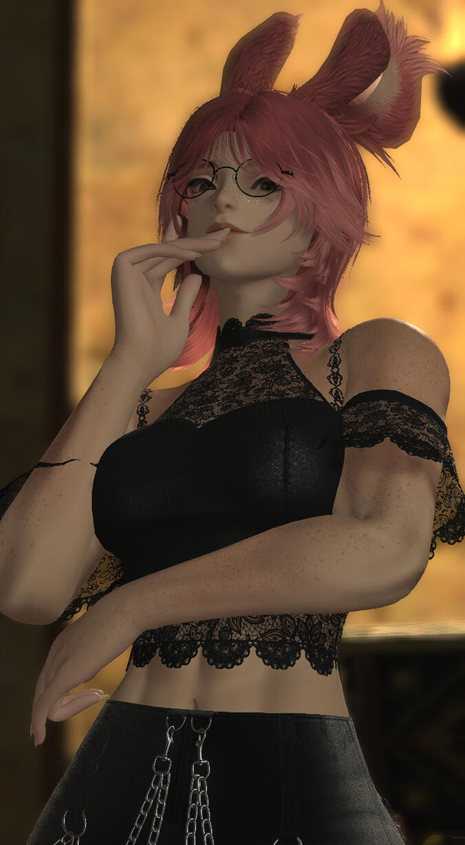 Hard Limits: Vore, gore, scat, watersports, ageplay. Anything extremely violent.Quick Intro: A researcher from Sharlayan, moved to Ishgard. Having found money troubles as an adult, she turned to the dark side to make money, and ended up falling in love with dancing.Quote: "Falling too far for the fear to embrace me, a voice from the past screaming, "There is no end, no."'Background: Born to two Sharlayan Scholars, Luso was always taught to be in pursuit of knowledge. They raised a quick witted, stubborn daughter who was keenly interested in healing, and math, much to her literature focused fathers dismay. It was not until Luso was 16 that her healing magic failed her: her father had fallen ill, and she could not find a way to cure him. His sickness grew, and grew, and grew, until her father passed away when Luso was 18. Amidst their grief, Luso and her mother moved to Ishgard. Luso's mother, who was quite old for an au'ra even when Luso was born, could barely stand the cold, and 5 years later, passed away due to old age and health complications that Luso didn't completely understand. Devastated, Luso almost gave up on her healing. She could not save her parents no matter how much studying she did, but she knew that giving up would only make her bitter. Choosing to dedicate herself to her research, she realized she needed a way to fund it.. a friend had offered for her to come to a local ishgardian venue, and she fell in love.She works during the day as a secretary, and an escort/dancer during the night. When she has time to spare, she dedicates it to both academic research and being active among other healers all around Eorzea.