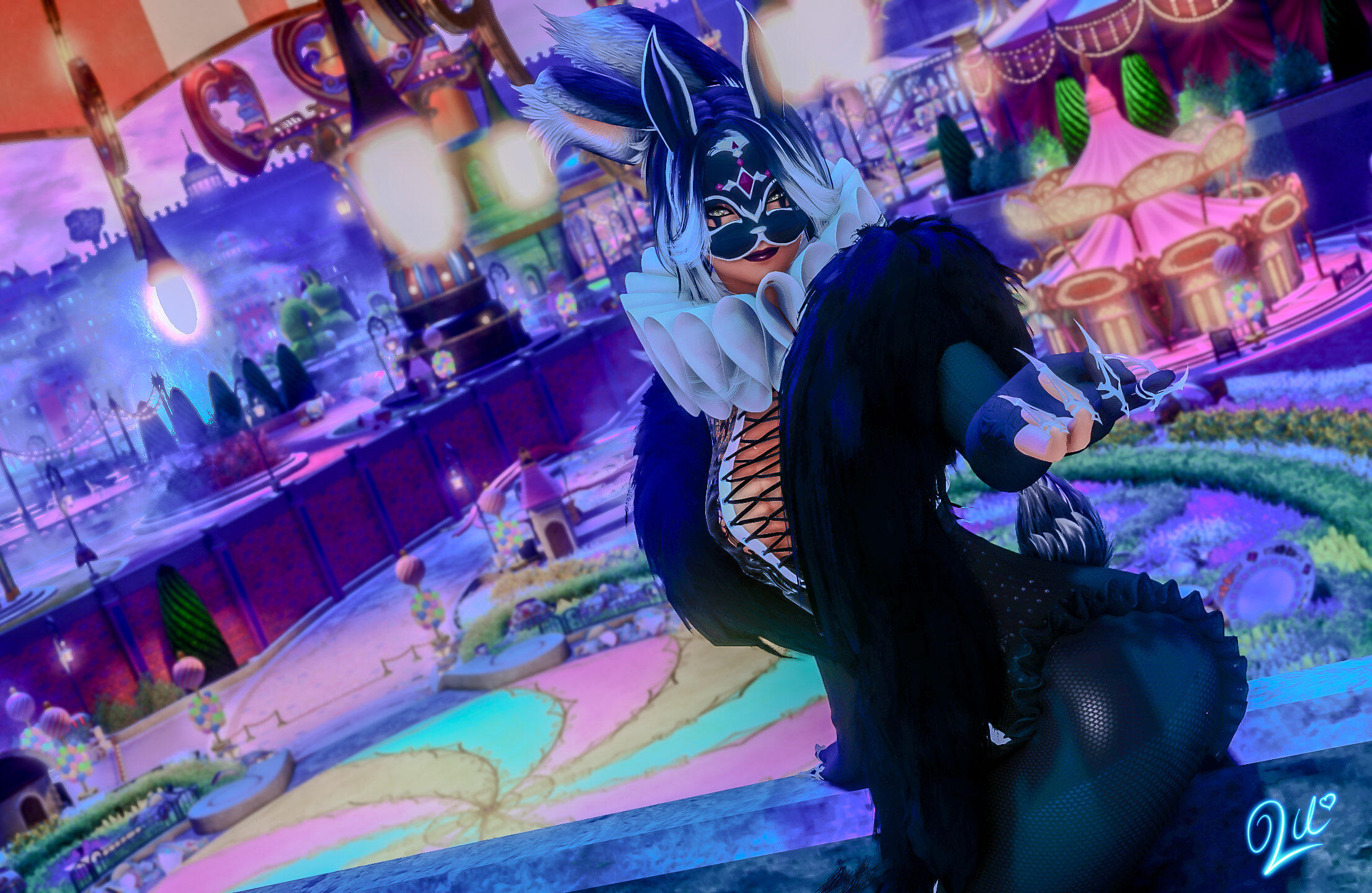 Kinks: https://imgur.com/u3NNcTn"Well hi there cutie, thanks for stopping by!" An impish grin grows across the Rava's face as she twirls in the dim light. Tossing her braids she dances closer, ear twitching in time with the music. Amethyst lipstick matching her eyes glistens, her lips parting as she laughs. "Like what you see? This bun likes /being/ seen... and being touched... and helping charmers like you find the most, mmm... exquisite pleasure! Don't be shy, I'm sure we can find all SORTS of interesting ways to spend the evening"